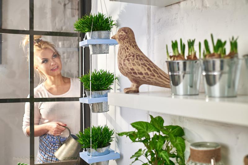Nie zapominajmy o makramie, która ostatnio zdominowała Instagram oraz nasze serca. Kwietnik na ścianie stworzony za pomocą tej techniki to prawdziwe dzieło sztuki! Wystarczą sznurek i kilka knotów, a już możesz powiesić swoje rośliny jak nigdy dotąd! Taki kwietnik wygląda niezwykle, a jednocześnie stanowi przepiękny akcent, który wprowadza do wnętrza luźny klimat pełen pozytywnej energii. Poza tym, plecenie makramy sprawia świetną przyjemność – kto by pomyślał, że robótki ręczne mogą być tak wciągające?